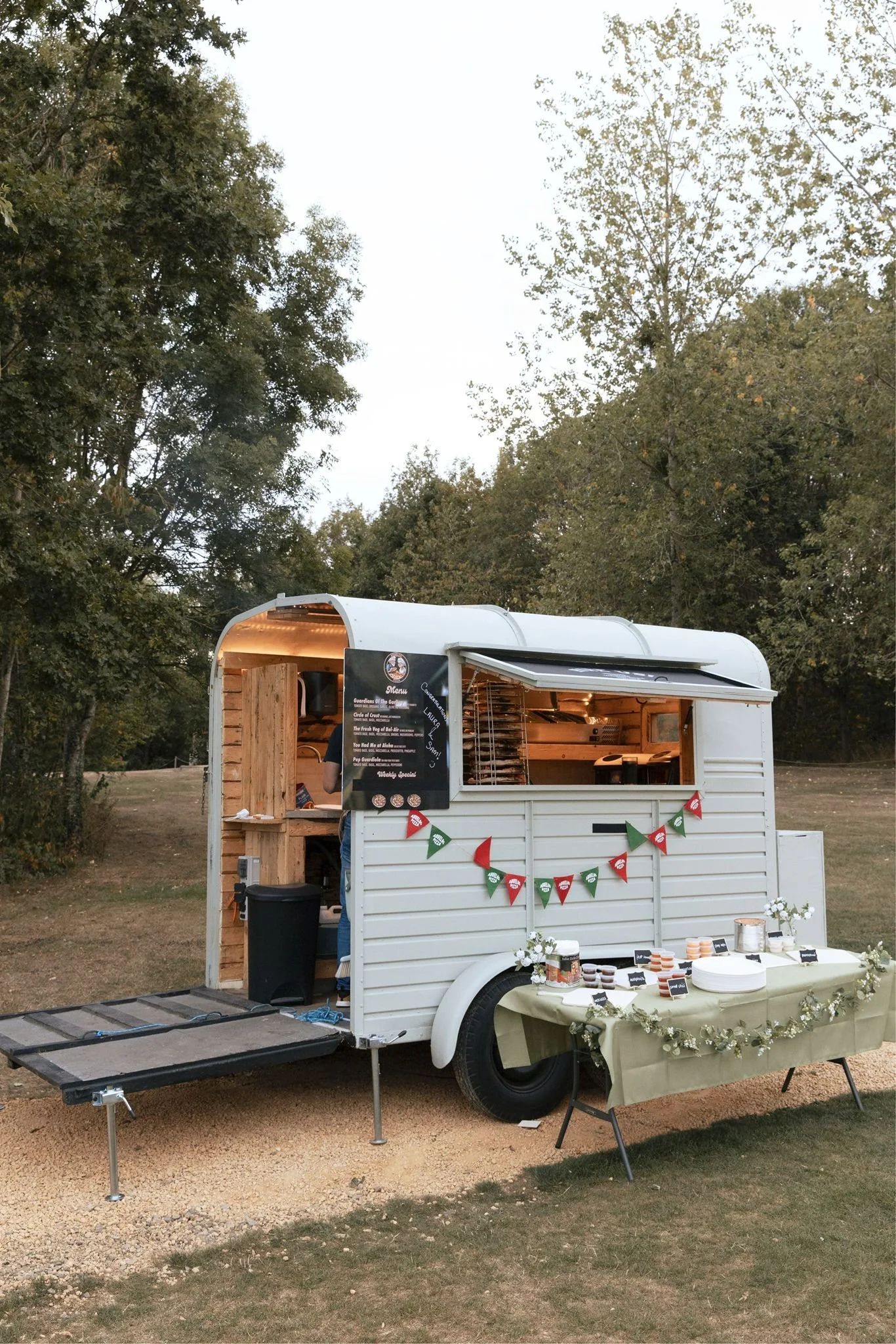 At Abuelos Pizza, we specialise in serving authentic Neapolitan-style pizzas, made with fresh ingredients and our own homemade Neapolitan pizza dough recipe. Our unique setup is a beautifully converted 1960’s vintage horsebox, with a fully equipped kitchen fitted with two gas-fired pizza ovens and a prep area. We bring the taste of Italy to all kinds of events, from weddings and private parties to festivals and corporate gatherings. Everything we serve is fresh — nothing frozen — and our flexibility, along with a friendly and professional service, is what makes us stand out.